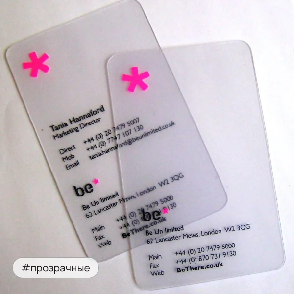 Прозрачные визитки на пластике — поле для креатива, чтобы запомниться на любом мероприятии.